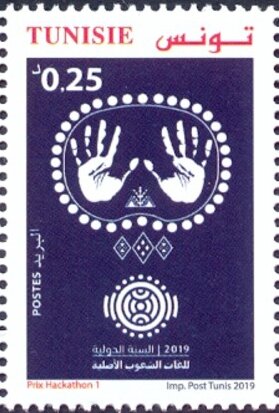 Émis dans le cadre de l'Année internationale des langues autochtones (2019) décrétée par l'UNESCO, ce timbre arbore une esthétique symbolique forte. Le visuel intègre des motifs géométriques et des empreintes de mains évoquant les racines berbères (amazighes) de la Tunisie et le patrimoine rupestre. Ce choix souligne l'importance de la diversité linguistique et culturelle dans l'identité tunisienne. C'est un hommage à la transmission orale et aux savoirs ancestraux qui constituent le socle de la mémoire collective des peuples autochtones à travers les millénaires.