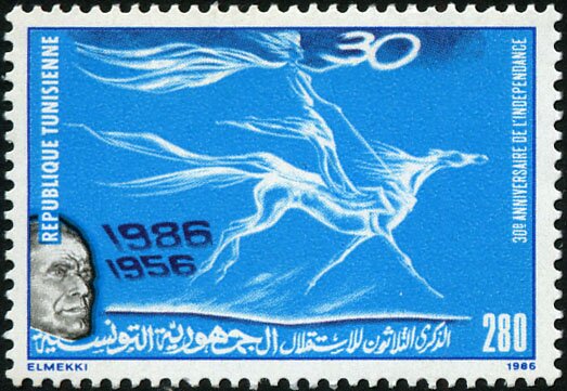 Ce timbre commémore le 30ème anniversaire de l'indépendance de la Tunisie.