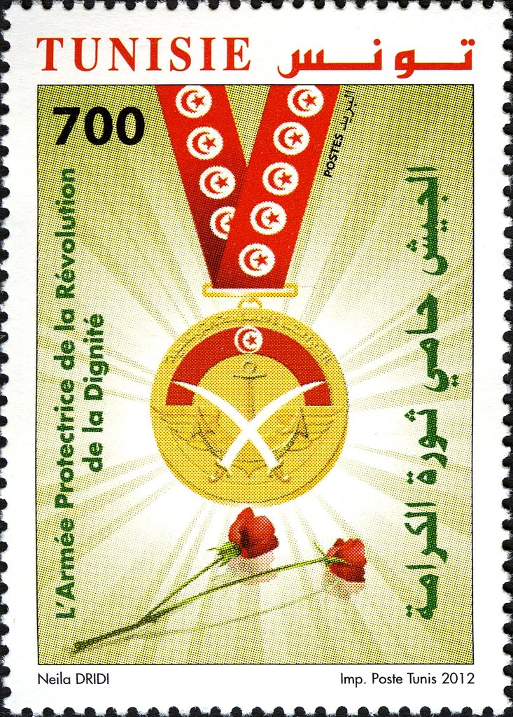 Ce timbre met en valeur le rôle de l’armée tunisienne dans la protection du pays et la préservation de la dignité nationale à la suite d’un moment historique majeur. L’illustration de la médaille, associée à des symboles nationaux et à des fleurs commémoratives, exprime le respect, le sacrifice et la reconnaissance. Le message porté souligne l’image d’une institution garante de la stabilité, de la souveraineté et de l’unité nationale. Dans le contexte tunisien, ce thème s’inscrit dans une mémoire collective récente et dans la valorisation du rôle des forces armées comme pilier de l’État et de la cohésion nationale.