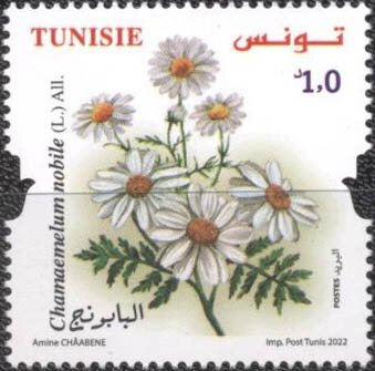 Ce timbre représente la Camomille noble, une fleur délicate aux pétales blancs et au cœur d'or, symbole de sérénité et de bien-être. Sa culture et sa cueillette dans les plaines tunisiennes témoignent d'une tradition de soins naturels transmise de génération en génération. En consacrant une émission à cette plante, la Poste Tunisienne souligne l'importance de l'agriculture des plantes aromatiques dans l'économie locale et met en valeur une esthétique florale douce qui fait partie intégrante du patrimoine paysager et de l'art de vivre tunisien.