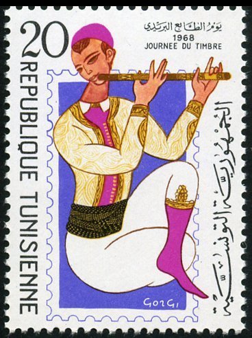 Ce timbre, émis à l'occasion de la Journée du Timbre 1968, célèbre l'âme musicale de la Tunisie à travers le talent de l'illustre artiste Abdelaziz Gorgi, figure de proue de l'École de Tunis.