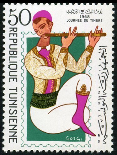 Ce timbre, émis à l'occasion de la Journée du Timbre 1968, célèbre l'âme musicale de la Tunisie à travers le talent de l'illustre artiste Abdelaziz Gorgi, figure de proue de l'École de Tunis.