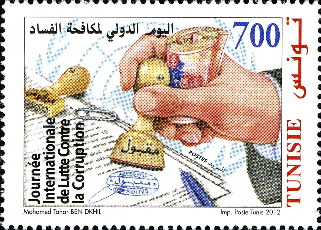 Ce timbre met en lumière un engagement civique et institutionnel contre la corruption, illustré par des symboles de la loi, de l’administration et de la responsabilité. L’image du sceau et des documents officiels évoque la transparence et l’intégrité comme fondements de la vie publique. Le message souligne l’importance de l’éthique, de la justice et de la bonne gouvernance dans le renforcement de l’État de droit et de la confiance citoyenne en Tunisie.