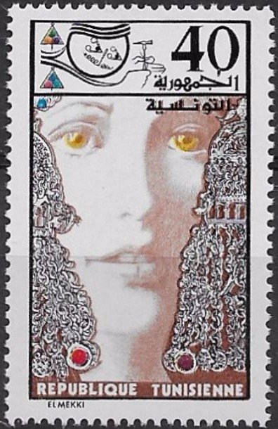 Ce timbre met en valeur le patrimoine artisanal et culturel de la Tunisie à travers la représentation d’objets traditionnels emblématiques, soulignant la continuité entre les savoir-faire anciens et l’identité nationale moderne. L’illustration associe une pièce de céramique ou de métal finement travaillée à un motif décoratif circulaire richement ornementé, évoquant l’esthétique des arts décoratifs tunisiens hérités des civilisations successives ayant marqué le pays, de l’Antiquité aux influences arabo-islamiques. Le décor rayonnant et la précision des motifs symbolisent l’harmonie, la maîtrise technique et le sens de l’équilibre propres à l’artisanat local, tandis que la composition globale suggère la transmission du geste, de la tradition et de la mémoire collective. Dans le contexte tunisien, ce timbre s’inscrit dans une démarche de valorisation du patrimoine matériel, rappelant le rôle central des métiers d’art dans l’économie traditionnelle, la vie quotidienne et l’expression culturelle. Il affirme ainsi l’importance de préserver et de promouvoir ces formes d’expression artistique comme fondement de l’identité nationale et comme lien vivant entre passé historique, créativité populaire et reconnaissance institutionnelle.