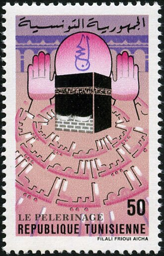 Ce timbre met en valeur le pèlerinage comme pilier spirituel fondamental de l’islam et comme expérience collective marquante pour les fidèles tunisiens. L’illustration, centrée sur le sanctuaire sacré et entourée de signes graphiques évoquant la circumambulation et la prière, traduit l’idée de mouvement rituel, d’unité et d’élévation spirituelle. Le message porté est celui de la foi vécue dans sa dimension universelle, où l’individu s’inscrit dans une communauté de croyants dépassant les frontières nationales. Dans le contexte tunisien, ce timbre souligne l’importance du pèlerinage dans la vie religieuse et culturelle, rappelant le lien ancien et constant entre la Tunisie et les grands lieux saints de l’islam, ainsi que la place de la spiritualité dans l’identité nationale.