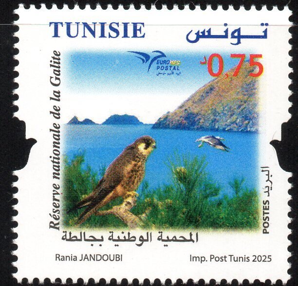 Ce timbre met en valeur la réserve naturelle de l'archipel de la Galite, un sanctuaire écologique protégé situé à l'extrême nord de la Tunisie. L'illustration, présentant le phare emblématique surplombant les falaises abruptes et les eaux cristallines, symbolise la préservation de ce patrimoine insulaire unique et la souveraineté environnementale du pays sur ses zones maritimes. À travers cette émission, la Tunisie souligne l'importance de protéger les écosystèmes fragiles de la Méditerranée et la biodiversité spécifique de ces îles, classées comme aire protégée d'intérêt international.